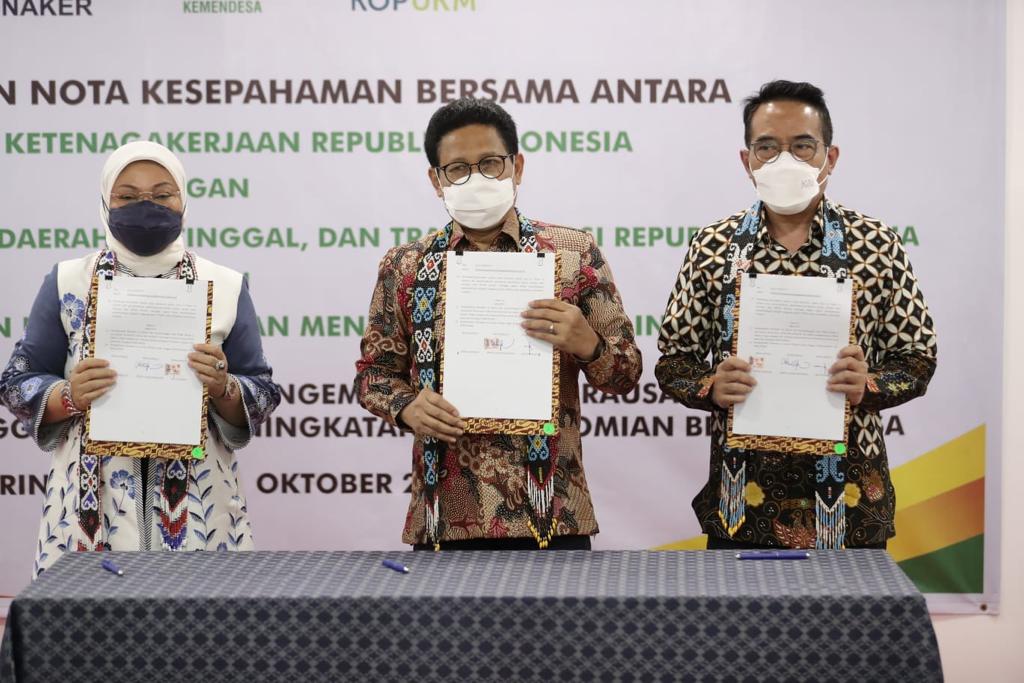 Tiga menteri tersebut yakni Mendes PDTT Abdul Halim Iskandar, Menaker Ida Fauziyah dan Menkop dan UKM Teten Masduki yang dalam penandatanganan diwakili Staf Ahli Menteri Bidang Ekonomi Makro Rulli Nuryanto.